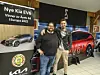 Rødsten Bilforretning hadde eit bra salsår i 2022. Bilseljarane Vegard Jegteberg (t.v.) og Christos Sandvik er svært nøgde med det, og poserer her framfor bildet av ein av dei mest populære elbilane dei selde.