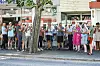 Rosendal Musikklag og Karl Øivind Kristiansen i aksjon i Skålagato i Rosendal. Laurdag inviterer dei til 130-årskonsert.