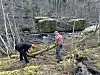 Vidar Ask og Ole Andreas Thorsen jobbar ved restane av den eldste saga, frå 1540. Den er på Slagget, og vart i si tid bygd av han som fekk ansvar for eigedomane til Halsnøy Kloster etter reformasjonen, Jens Splid.