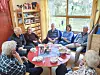 Pensjonistar rundt bordet. F.v: Harald Hovland, Magnar Hillesdal, Anne Grethe Hillesdal, Oddbjørn Sørheim, Reidun Sørheim, Kjell Kinn og Agnes Hovland.