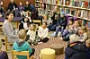 Veronika Erstad opna den mjauande familiedagen i biblioteket med høgtlesing frå boka si «Kattejenta» laurdag føremiddag.