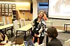 Biblioteksjef Trude Hege Bergesen hadde med seg pingvinen Gunni under besøket i rådhuset.