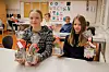 Oline og Ingeborg visar fram nokre av dei fine gåvene som skal delast ut.
