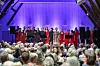 Det norske solistkor og komponist Ruth Wilhelmine Meyer (i midten) samla på scena for å ta i mot applausen etter den fantastiske framføringa av «Lokeslottet».