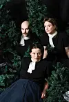 Musikarane Vegard Rubach Ese og Tiril Eirunn Einarsdotter har saman med skodespelar Embla Hane (nedst i biletet) hatt suksess med teaterframsyning "Sånger ur skogen".