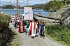 Trine Ommer Bjelland frå Halsnøy og kystpilegrimsprest Einar Vegge leia prosesjonen frå Klostervågen og opp til Klosteret.
