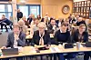 Medan Arbeidarpartiet ved Per Harald Havnen Löfgren Johansen (t.v.) og Synnøve Solbakken røysta ja til helsehuset, gjekk Senterpartiet i mot. Framme t.h. sit Veronica Thorkildsen Thorsen med Jarle Andresen ved si side. Bak sit Ingve Hesjedal og Julie Holmedal Askeland. Bak der igjen Svein Åge Vangdal.