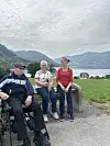 "Sprekare benkar, sprekare folk" var eitt av prosjekta til Rosendal bygdelag. Leiar Solfrid H. Siqveland testar benkane saman med Gunvor og Martin Øyerhavn.