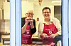 Arkivfoto frå julekakebaking på Rosendalstunet: Bente Haugen og Astri S. Måkestad i full sving på kjøkenet.