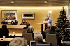 Jostein Saghaug (på talarstolen) hausta hovudristing frå ordførar Vegard Bjørnevik då han kritiserte fleirtalet sitt budsjett. Dette reagerer Thor Inge Døssland på.