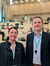 Marianne Nordhus og Steffen Fjellestad er nøgde med fråsegna som fylkestinget vedtok. (Foto: Alexander Fosse Andersen).
