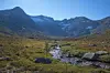 Elva renn frå det idylliske Møsetjørn, som ligg i Øvre Myrdal, rett under dei mektige Bjørndalstindane.