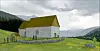 Ænes kyrkje slik ho kan ha sett ut i mellomalderen. (Måleri: Kaare Skaala, 2022).