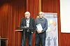 Staskarane Johannes Femsteievik (t.v.) og Torgils Våge tok i mot gåve på vegner av Pensjonistforbundet HVØ under utdelinga til Kvinneheradstiftinga på måndag. Tysdag 29. november tar dei med seg gåveteiknet og trekkspela sine til årets siste møte i pensjonistforbundet HVØ.