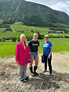Høgre-politikarane Lise-May Sæle (t.v.) og Liv Kari Eskeland var nyleg på besøk hjå bonden Kjersti Hjelmeland i Omvikdalen.