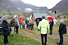 Onsdag var Forvaltningsutvalet på synfaring på Mel. Utvalsleiar Øyvind Utne (t.h. under paraplyen) orienterte om sakshistorikken.