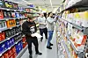 Carl Bruno Bodin (t.v.) blir ny dagleg leiar for Bunnpris på Seimsfoss, medan Andreas Berge (t.h.) skal konsentrera seg om å styra butikken på Husnes. Raymond Johansen frå regionskontoret hjelper til med å få alt på plass før nyopninga.