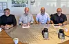 Signering av den nye kontrakten vart gjort med prosjektleder Ragnar Breivik hos Hydro Husnes (t.v.), dagleg leiar Trygve Kjerpeseth frå BKS, innkjøpssjef Andreas Tarberg hos Hydro Husnes og prosjektleder Håkon Ekeland frå BKS til stades.