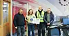 Onsdag overleverte Lions Club ein sjekk på 3000 kroner til Brøddamo. F.v: kasserar i Lions, Gianni Rebaudo, Brøddamo, Trude Beckholdt, president i Lions, Agnar U. Melkersen og styremedlem i Lions, Esben Zimmer.