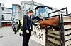 Ordføraren fekk eit norgesglas med dagsfersk møk til å levera vidare til statsministeren, i lag med setjepoteter, slik at Erna kan dyrka sin eigen mat.