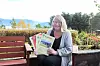 Margrethe Øhlander Ask viser fram ein bukett med utgåver av Bygdadrøso.