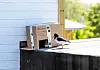 Tjeldefamilien legg beslag på uteplassen vår, men gir litt underhaldning i retur.