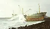 Slik såg det ut då «Mariane Danielsen» gjekk på grunn i islandsk lava i 1989. (Foto: Ukjent).