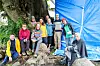 Helen Petersen (framme t.h) håpar at denne gjengen som tok turen innom Halsnøy Kloster som ein del av presseturen langs kystpilegrimsleia kan vera med på å spreia ordet om reiselivskonseptet. Frå venstre: Lauritz Haarr, Wenche Lindtner, Anne van Oorshot, Gea van Veen, Sasha Kraan, Lezzie Enfield, Steinar Larsen, Mattias Jansson og Boyoung Lee.