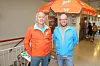 Gunnar Helleland (t.v.) og Åge Aakre frå INP stod på stand i Rosendal måndag ettermiddag.