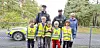 Reflesvestutdeling:Førsteklassingane Franek Ostrowski (t.v.), Thomas Hjortland, Live Marie Vangdal, Nis Anders Aggvin og Frida Hongkahm ved Hatlestrand skule fekk torsdag refleksvestar av politiet og Kvinnherad Energi. Mikael Nesse, Hasan Kirac og Vigdis Uglehus Bøym hjelpte til å gjera dei unge skulebarna betre synlege i trafikken. (Foto: Håvard Sætrevik)