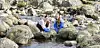 Eline Albrethson (t.v.) og Kristine Eikemo Røstbø planta overskotsrogn i Melselva tysdag.