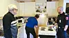 Jørgen Nilsestuen får her montert komfyrvakt av Hans Ordin Østebø og Atle Josdal.