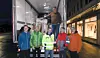 Trond Inge Haugland (t.v.) og Rune Haugland frå Sport 1 Husnes gav klede og sko til ein verdi av 200.000 kroner til THK Stiftinga måndag. Her saman med Tor Arne Nygård (midten), Leif Jarle Bergstø, Tormod Myklebust og Vidar Akselsen (oppe).