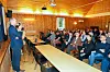 Regionleiar Tor Kristoffersen i Fjord1 (t.v.) fortalde publikum på Varaldsøy at MF «Lærdal» no skal ha fått orden på dei fleste tekniske vanskane.