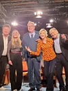 Førre veke vart det gjort opptak av Eides Språksjov med Kvinnherad sin eigen poet Arne Torget som gjest. Her saman med programleiarane Sjur Hjeltnes(t.v.), episoden sin andre gjest Hilde Sandvik, Linda Eide og Gunnstein Akselberg (t.h).
