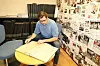 Dagleg leiar Jarle Håvik har mange permar med gamle Grenda-årgangar han kan bla i no når avisa fyller 70 år.