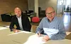 Breeze Ship Design-gründerane Tommy Hivand (t.v.) og Ove Wilhelmsen har signert avtale med tidlegare arbeidsgjevar Wärtsilä. (Pressefoto)
