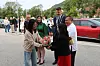 Michelle Gutierrez frå Løfallstrand overrekte blomar til ambassadøren si kone, Madame Myla Antoinette Fos.