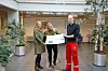 Fabrikksjef Jon Ola Ystgaard ved Hydro Husnes overrekte onsdag ein gåvesjekk på 100.000 kroner til aksjonskomiteen i Kvinnherad.