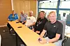 Jostein Rødland (t.h.) skal representera INP i formannskapet. T.v. sit Heidi Bolette Jakobsen, Gunnar Helleland og Åge Aakre som skal inn i kvart sitt utval. (Arkivfoto).