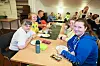Tove Anita Olsen (t.v.), Magnhild Fjell, Tor Vidar Sæle, Ulrikke Vik og Mailinn Fonn deltok på feiringa av at Kvinnherad vekstbedrift vart kunde nummer 5.000 hjå Kvinnherad breiband.