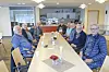 Karaklubben kunne endeleg samlast til kaffidrøs igjen, og måndag var det fullt bord i kantina på Halsnøytunet. Framme til venstre: Henry Askeland, Sigmund Sjo, Tor Bjelland, Magnar Reigstad, Alv Nodland, Roar Sæbø og Reidar Koløy.