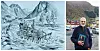 Røsseland fekk sitt første store oppdrag i Rosendal i 1952 då Skålaelva blei mudra etter den store flaumen hausten 1940. (Teikning: Ole Bjarte Røssland).