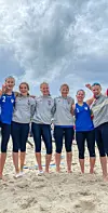 Melina Mol (Strandvik), Emma Rødal, Siri Aasgard, Lone Sofi Silke, Lilli Aksnes-Øystese og Henriette Næss Våge er klare for semifinalen i NM i sandvolleyball for regionslag.