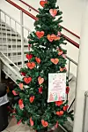 Slik såg gåvetreet i Rosendal ut då det nett var sett ut. Sist Grenda passerte, verka det å vera heilt ribba for raude ynskelappar.