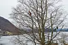 Kristoffer Nerhus og Harddanger Hagehjelp heng høgt over bakken for å forma og letta ei bøk i Sandvikjo i Omvikdalen.