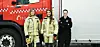 Brannkonstablane Janne Hatlestad (t.v.) og Stine Brattetveit klare for øvelse saman med branningeniør Mette E. Vintertun.