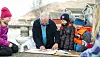 Bestefar og friviljug Olav Steinsvik syner borna korleis han fileterer ein fisk. Emilie Seglem Bjørge (t.v.), Henrik Hjelmeland Steinsvik, Lars Mehl og dei andre borna på kaien følgjer interessert med.