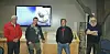 Vikingskatten frå Hatteberg (som er synleg på tv-skjermen på veggen) vil snart få fast plass i Dinosaurhuset i Steinparken. Kaare Skaala (t.v.), Sigurd Hatteberg, Øystein Skaala og Sigmund Spjelkavik startar no arbeidet med å få laga kopi av den verdskjende skatten.