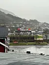 Helikopteret vart hengande over fotballbanen ei stund, før det drog sørover.
